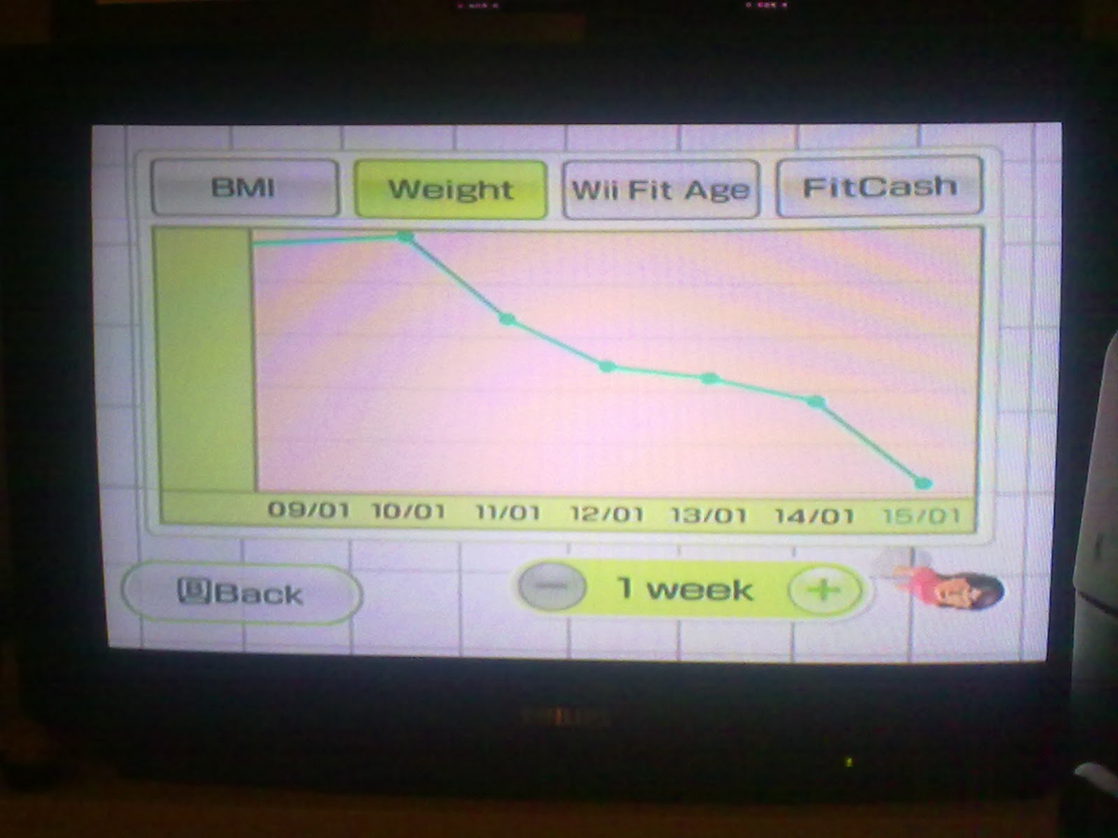 I've just done 30 minutes on Wii Fitness Coach and 16 minutes on my Wii Fit and the scales today say I am 2 lbs down WOOOHOOOO (I'm guessing its just 1.5 that I lost from the other days too as they said my weight had decreased a little. My muscles are aching today! That must mean that the exercise is actually having an effect on me though, so its all good.